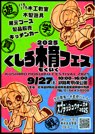 北海道釧路総合振興局では、2025年9月27日(土)に多くの方々に楽しみながら木にふれあっていただくために「くしろ木育フェスティバル2025」を釧路町別保公園にて開催します。