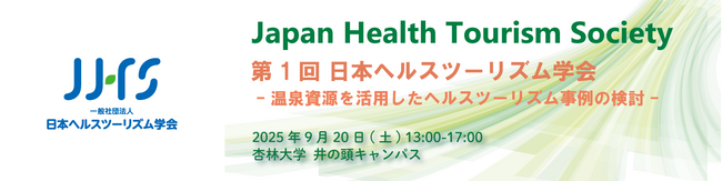 一般社団法人日本ヘルスツーリズム学会は、2025年9月20日(土)に杏林大学 井の頭キャンパスに於いて、「第1回日本ヘルスツーリズム学会」を開催いたします。一般社団法人ヘルスツーリズム学会は、日本ヘルスツーリズム学会の運営事務局として2024年4月に法人化しており、情報交換や研究会等を通して、日本ヘルスツーリズム学会への賛同者(会員)を募るために活動しております。