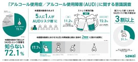 沢井製薬株式会社(本社:大阪市淀川区、代表取締役社長:木村元彦)は、全国の20〜69歳の男女(1,000名)を対象に「アルコール使用症/アルコール使用障害(AUD)」における日本国内の生活者の実態把握を目的としたインターネット調査を実施いたしました。