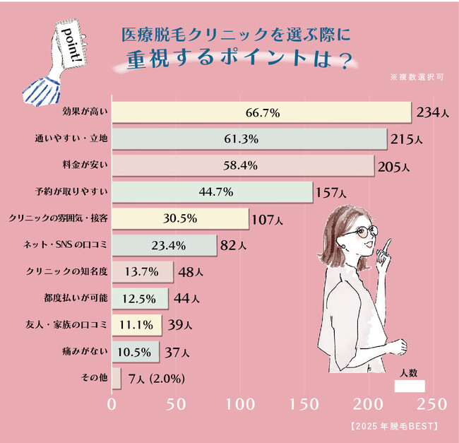「医療脱毛を選ぶ際に重視するポイントはどこですか?」と質問したところ、TOP5が下記のようになりました。
