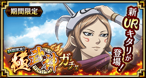 9月24日(水)14:00までにログインすると、『極武神ガチャチケット:キタリ』を1枚プレゼント! 『極武神ガチャ』を引くことができます!