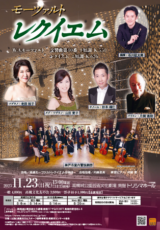 令和7年11月23日(日曜日・祝日)に高槻城公園芸術文化劇場で、公募によって集まった115人の市民合唱団とプロのオーケストラ、ソリストが共演する演奏会が開催されます。市民合唱団が約1年にわたる練習を重ねて挑むのはモーツァルトの名作「レクイエム」。この日限りの歌声がホールに響き渡ります。