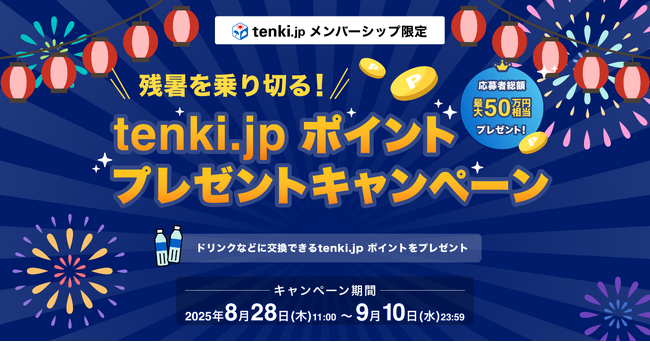 株式会社ALiNKインターネット(本社:東京都豊島区/代表取締役CEO 池田洋人/以下、当社)は、一般財団法人 日本気象協会(本社:東京都豊島区、理事長:渡邊 一洋)と共同で運営している「tenki.jp( https://tenki.jp )」の「tenki.jp メンバーシップ」において、2025年8月28日(木)より「残暑を乗り切る!tenki.jp ポイントプレゼントキャンペーン」を開催いたします。
