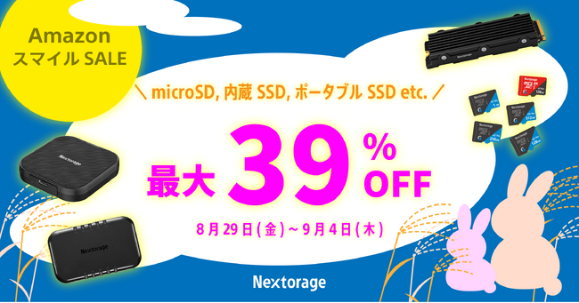 Nextorage株式会社(ネクストレージ株式会社、代表取締役:本多 克行、神奈川県川崎市)は、2025年8月29日(金) より開催されるAmazonスマイルSALEに、SSDなどゲーミング製品で参加することをお知らせいたします。