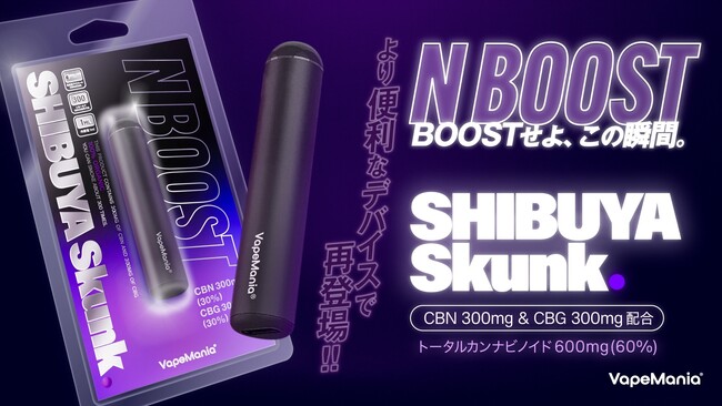 CBD・CBN・CBGなどのカンナビノイド製品の専門店「VapeMania(R)︎」(運営:株式会社VMC、本社:東京都台東区)は、発売直後に完売となった人気商品「N BOOST SHIBUYA Skunk」を、より使いやすくリニューアルし、2025年08月25日(より再販売を開始することをお知らせいたします。