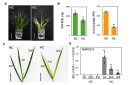 まず、共同研究グループはコムギを高温環境下(32〜35°C)で2週間育て、葉の光合成の指標である光化学反射指数(PRI)[5]や生育の低下を観察しました(図1)。葉の元素組成を分析すると、鉄含量が顕著に低下しており、鉄欠乏が光合成の低下や成長抑制と関連する可能性が考えられました。鉄欠乏応答に関わる遺伝子の発現を調べると、高温ストレス下では若い葉ほど鉄欠乏の兆候が強く、葉の黄化度合いとも符合していました。