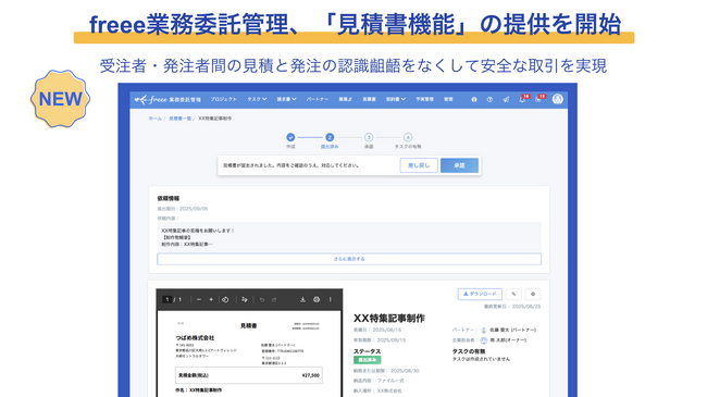 freee業務委託管理、「見積書機能」の提供を開始 受注者・発注者間の見積と発注の認識齟齬をなくして安全な取引を実現