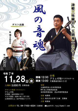 『津軽三味線名人 五錦竜二「風の音魂」』を2025年11月28日(金)に開催決定!「チケットペイ」にて申し込み受付開始!