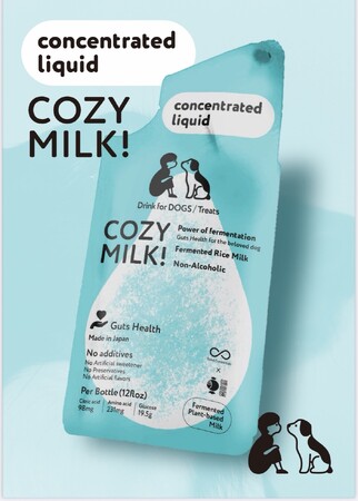コージーミルクは、金沢で創業約 400 年の老舗である株式会社福光屋と、愛犬が安心して飲めるドリンクとして共同開発した、高品質の麹甘酒です。