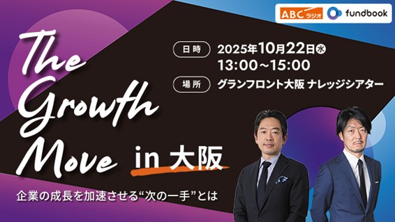 朝日放送ラジオ株式会社(以下、ABCラジオ)と、M&A仲介事業を行う株式会社fundbook(以下、fundbook)は、関西の企業経営者や経営企画担当者を対象にした特別セミナー 「The Growth Move in大阪 ~企業の成長を加速させる次の一手とは~」 を、2025年10月22日(水)にグランフロント大阪・ナレッジシアターで開催いたします。