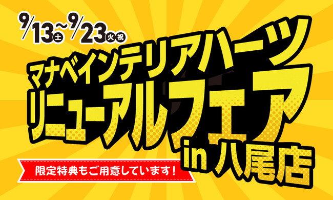 2025年9月13日(土)、マナベインテリアハーツ八尾外環状店がリニューアルオープン!新しくなった売場で、暮らしを彩るインテリアとの出会いをぜひお楽しみください。