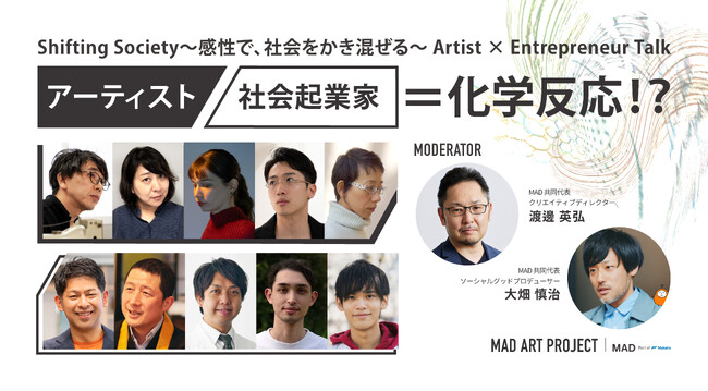 マカイラ株式会社(東京都千代田区、代表取締役CEO:藤井宏一郎、代表取締役COO:高橋朗、以下マカイラ)の社内カンパニーであるMakaira Art&Design (本社:東京都千代田区、共同代表:大畑慎治・渡邊英弘、以下MAD)は、2025年9月29日(月)から10月5日(日)に東京・三軒茶屋のオルタナティブスペース「clinic」にて開催するアート展『Shifting Society~感性で、社会をかき混ぜる~』の開催を機に、異分野のトップランナーによるオンライントークシリーズ「Artist × Entrepreneur Talk」を2025年9月8日(月)より順次配信することをお知らせします。