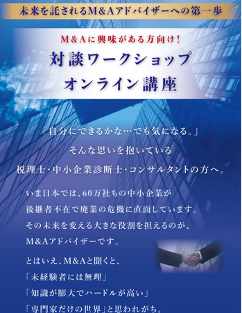 【9月9日(火)無料オンライン講座】M&Aに興味がある士業・コンサルタント・中小企業経営者へ無料オンライン講座「対談ワークショップ」開催のお知らせ