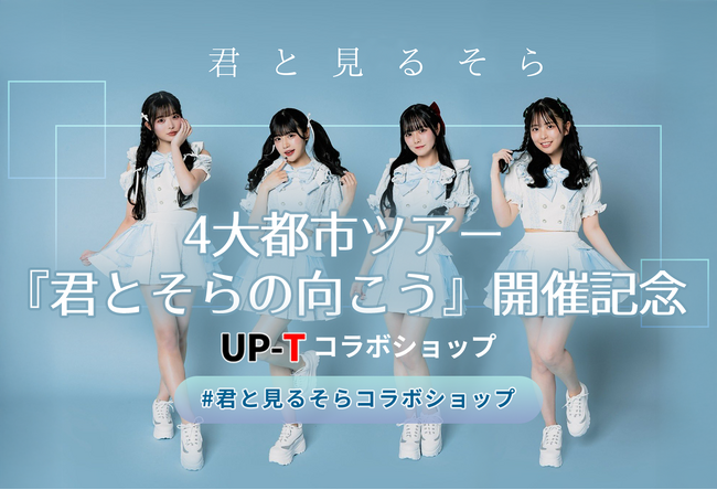 君と見るそらの4大都市ツアー『君とそらの向こう』の開催を記念して、特別なUP-Tコラボショップがオープンいたしました!今回のコラボでは、ツアーをさらに盛り上げるために制作されたツアー限定デザインTシャツや、ファン待望の各メンバー推しTシャツをラインナップ。ここでしか手に入らない特別なアイテムは、ライブの高揚感をそのまま形にしたような仕上がりとなっています。ツアーでの熱い時間や、大切な仲間と過ごした瞬間を思い出として残すだけでなく、Tシャツという“形”として日常に持ち帰れるのはこのコラボだけ。ライブ会場で着用して一体感を楽しむのはもちろん、普段使いでもあなたの毎日に「君と見るそら」の世界を添えてくれます。