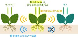 京都大学、弘前大学、名城大学、イスラエル・ベン=グリオン大学、福島大学の研究チームは、日本の在来植物であるオオバコ(Plantago asiatica)が塩ストレスを受けた際に、地上と地下の両方を通じてストレス情報を他の個体に伝達していること、さらに情報が伝わる相手が地上部と地下部で異なることを明らかにしました。