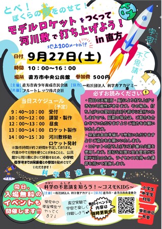 「とべ!ぼくらの夢をのせて!モデルロケットをつくって河川敷で打ち上げよう!」を開催します。
