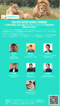 angleReserve株式会社は、2025年9月30日(火)、 Google for Startups Campus Tokyo にて「生物多様性」「ネイチャービジネス」をテーマにしたトークセッション『Talk with Nature Business Founders ~生物多様性に取り組むネイチャービジネスの最前線~』を開催します。