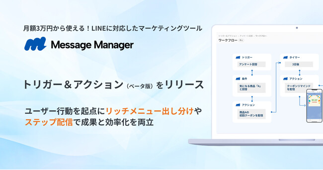 月額3万円から使えるLINEに対応したマーケティングツール「Message Manager」、新機能「トリガー&アクション(ベータ版)」をリリース