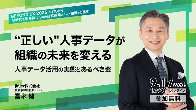 クラウド型人事労務システム「ジンジャー」を提供しているjinjer株式会社(本社:東京都新宿区 代表取締役社長CEO:冨永 健)は、2025年9月17日(水)に開催予定の、ダイヤモンド社メディア局主催の「BEYOND DX 2025」に、代表取締役社長 CEOの冨永が登壇することをお知らせします。