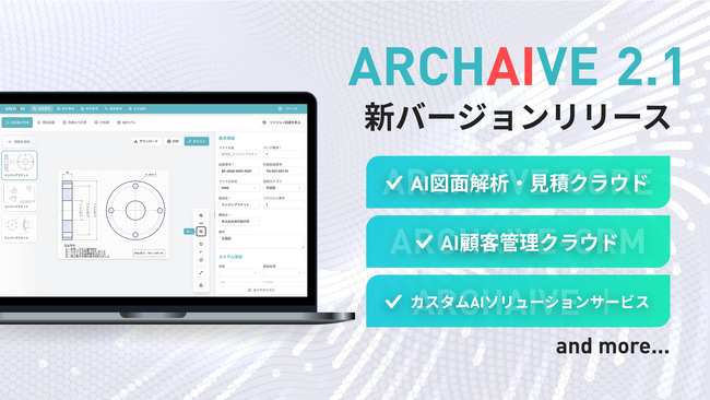 製造業のDXを加速するAIプラットフォーム「ARCHAIVE 2.1」を2025年10月1日より提供開始。AIによる図面解析・見積から顧客管理までを一気通貫で支援。