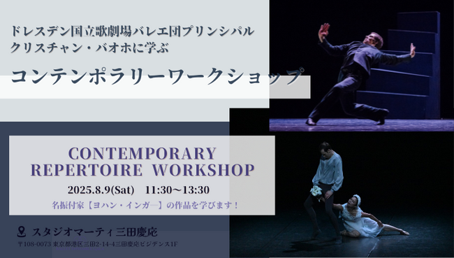 スタジオマーティ三田慶応(東京都港区)にて、ドレスデン国立歌劇場バレエ団所属のChristian Bauch(クリスチャン・バオホ)によるコンテンポラリーワークショップが開催されました。