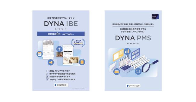 ダイナテックでは、宿泊予約システム『DYNA IBE(ダイナ アイビーイー)』とホテル管理システム『DYNA PMS(ダイナ ピーエムエス)』を中心にした、宿泊施設の課題を解決するソリューションを展示・紹介します。