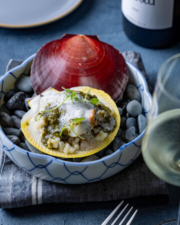 月日貝と山芋の薪火ロースト 海藻のエマルジョンソース(イメージ)