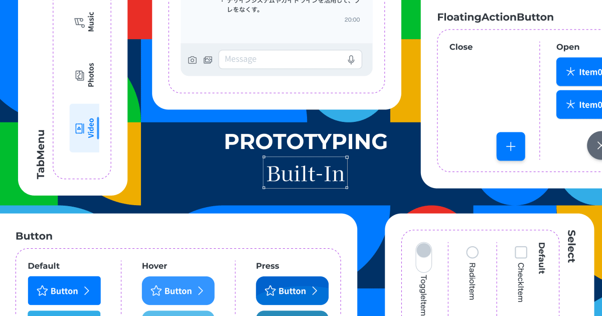 ボタンのホバーやクリックなど、よく使う動きがあらかじめ各コンポーネントに設定されています。そのため、UIデザインから簡単に動きのあるリアルなプロトタイプをスピーディーに構築することが可能です。ユーザーが実際に操作する感覚に近い体験をデザイン段階から確認することができ、またプロトタイプを用いたユーザーテストなどにもすぐにご活用いただけます。
