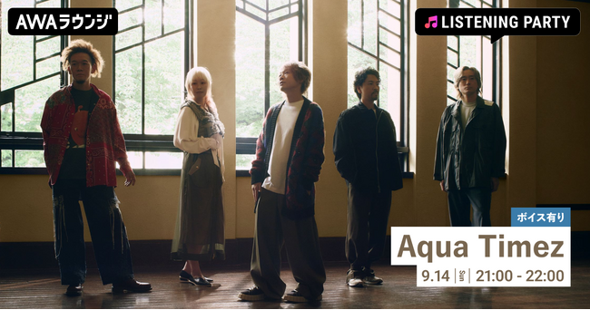 AWA株式会社(本社:東京都港区、代表取締役CEO:冨樫晃己)が運営する、サブスクリプション型(定額制)音楽ストリーミングサービス「AWA(アワ)」は、2025年9月14日(日) 21:00~22:00にて、無料で誰でも参加できるオンライン空間「AWAラウンジ」で、Aqua Timezの限定ボイスもオンエアするリスニングパーティーを開催いたします。