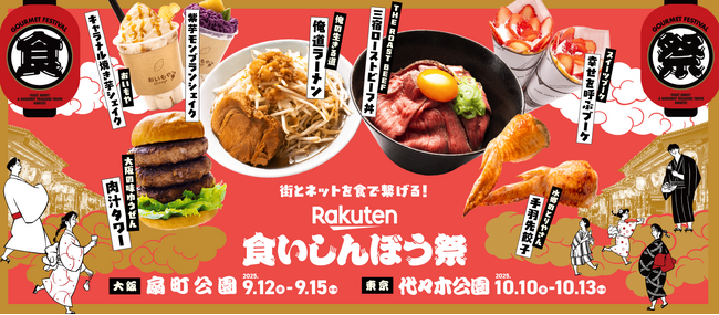 (注)大阪・扇町公園は2025年9月12日(金)から9月15日(月・祝)、東京・代々木公園は2025年10月10日(金)から13日(月・祝)にそれぞれ開催します。なお東京・代々木公園で開催する「楽天くいしんぼう祭」は、「第16回 九州観光・物産フェアin代々木2025」内の一区画において実施します。