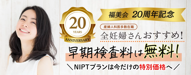 医療法人社団福美会ヒロクリニック(理事長:岡浩子)は創立20周年を記念し、新型出生前診断(NIPT)を期間限定の特別価格で提供。全国13院の直営クリニックで受診可能です。