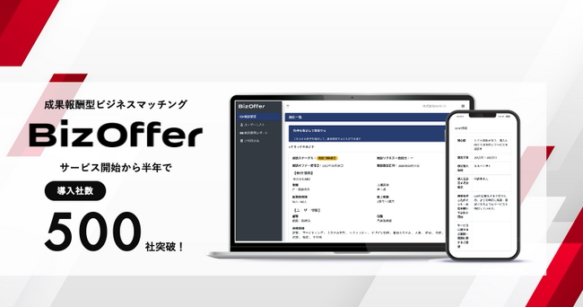 成果報酬型ビジネスマッチング「BizOffer」、提供開始から半年で導入社数が500社を突破