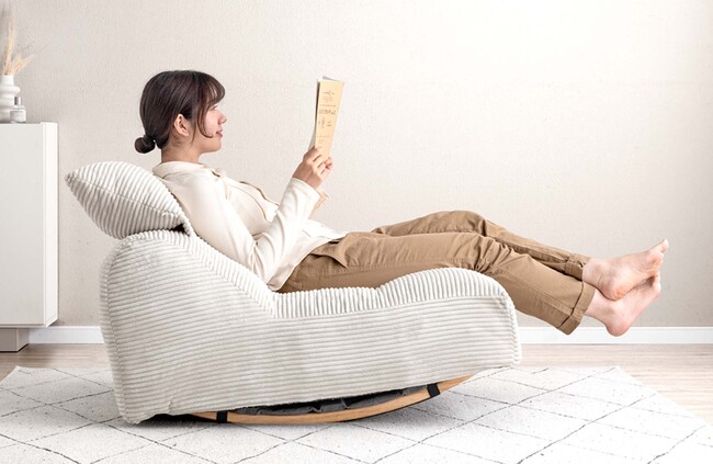 [画像2: https://prcdn.freetls.fastly.net/release_image/39747/332/39747-332-157ab154fe091ab3c84df777252dc0a1-2000x1300.jpg?width=536&quality=85%2C75&format=jpeg&auto=webp&fit=bounds&bg-color=fff ]画像:心地よく揺れながら寛げるロッキングソファ