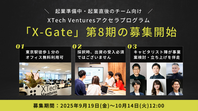 東京駅徒歩1分のオフィス利用可!事業立ち上げに向き合うアクセラプログラム『X-Gate』第8期生の募集を開始