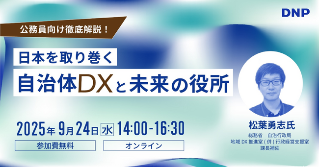 大日本印刷株式会社(DNP)XRコミュニケーション(R)事業では、2025年9月24日に― 「DNP P&Iセミナー 日本を取り巻く自治体DX動向と未来の役所」 ―をオンラインで実施します。参加費は無料で、事前申込制となっています。