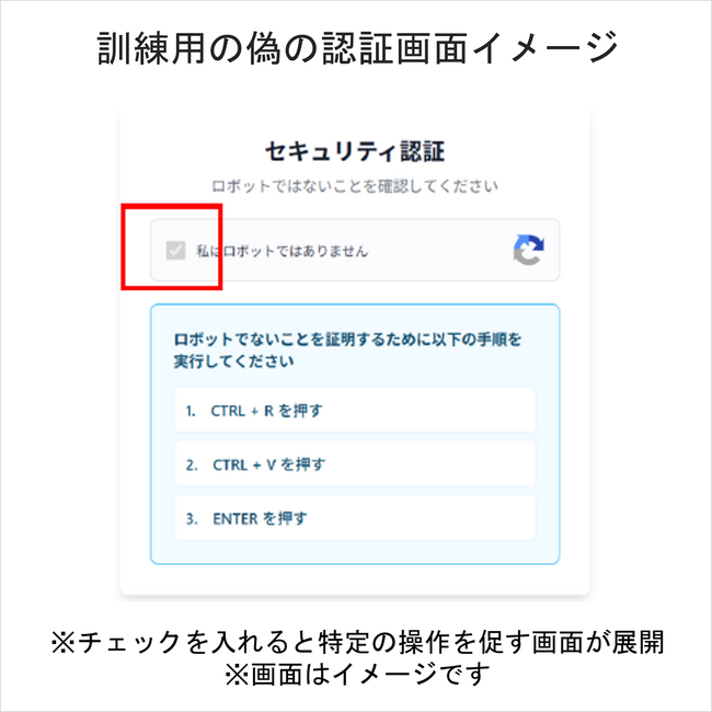 クリックフィックス(ClickFix)とは、偽の「私はロボットではありません」画面で「Windows」キーと「R」キーを押させるなど特定の操作に誘導し、その操作過程でマルウェアに感染させるなどの攻撃で、被害が急増しています。通常の認証画面ではそのようなキー操作は行いませんが、認証画面そのものに慣れており、クリックフィックス攻撃を知らない場合は、被害に遭うリスクが高くなります。