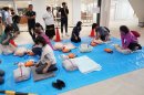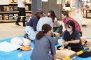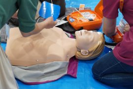 実施内容:心肺蘇生(胸骨圧迫)の実技練習、AEDの使用体験
