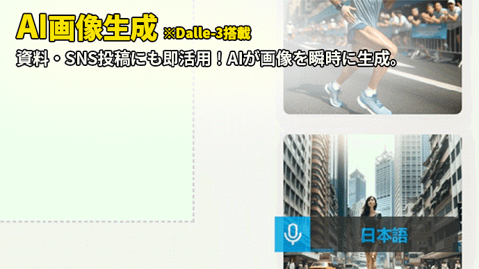 プレゼン資料、SNS投稿、企画書、バナー制作など、あらゆる場面で「使える画像」をすぐに作成可能。クリエイティブ業務のスピードと幅が、AIで飛躍的に広がります。