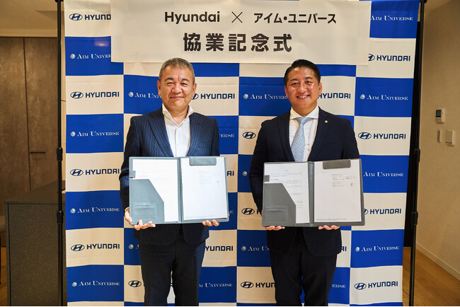 左からHyundai Mobility Japan株式会社代表取締役社長 七五三木 敏幸氏、アイム・ユニバース代表取締役CEO 藍川 眞樹
