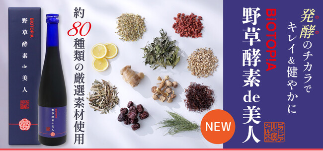 ビオトピアより「酵素ドリンク」誕生。80種類の厳選素材使用の『野草酵素de美人』新発売!