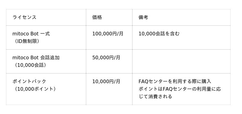 なお、本機能のAI分析処理にはmitoco Bot本体のライセンスに加えて、ポイントパック(生成AI従量課金)のご利用が必要です。