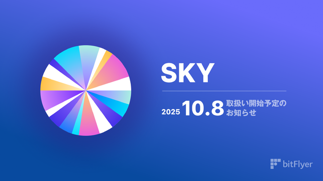 株式会社 bitFlyer(本社:東京都港区、代表取締役:加納 裕三、以下「当社」)は、 2025 年 10 月 8 日(水)より販売所でスカイ(以下「 SKY 」)の取扱いを開始することをお知らせいたします。SKY は、メイカーダオ( MakerDAO )のガバナンストークンであるメイカー(以下「 MKR 」)が、プロジェクト名をスカイ( Sky )へ変更したことに伴い、新たに誕生したガバナンストークンです。