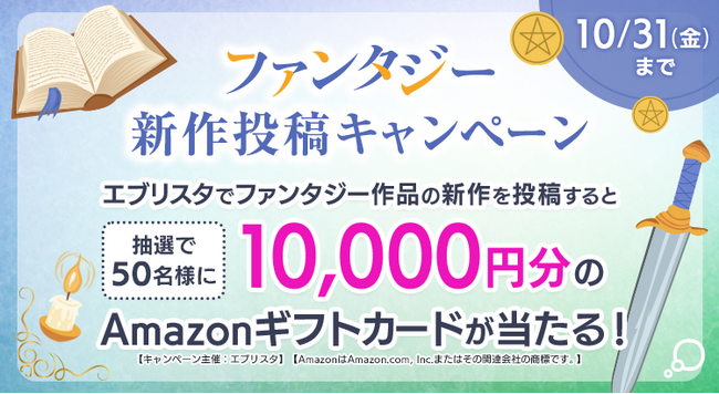 【1万円分のAmazonギフトカードが当たる!】小説投稿サイト「エブリスタ」にて新機能リリースを記念して「ファンタジー新作投稿キャンペーン」を開始
