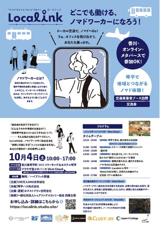 2025年10月4日(土)に開催されるイベント「【ハイブリッド開催:参加費無料】Localink どこでも働けるノマドワーカーになろう!」(主催:100万人DAO合同会社/共催:琴平バス株式会社)において、ネクストプラン合同会社が企画・運営を担当することをお知らせいたします。