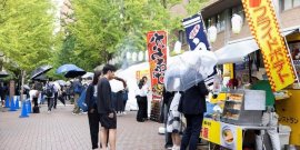 Eキャンパスグラウンド横にて、全国にある校友会支部の周知を目的として、支部のある地域の名産品を販売します。また、産学連携商品や近大グッズなど大学発商品の販売を予定しています。