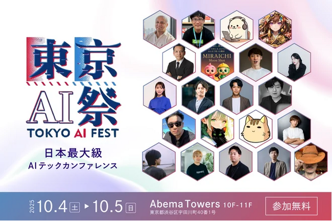 AiHUB株式会社(本社:東京都千代田区、代表取締役:園田れい)は、2025年10月4日-5日でABEMAタワーにて開催される日本最大級のAIテックカンファレンス「東京AI祭2025」にプラチナスポンサーとして参画いたします。また、本イベント内では、アニメ監督とアニメ×AIの可能性を語る特別セッションやAIハッカソンでの審査員、ブース出展を予定しています。