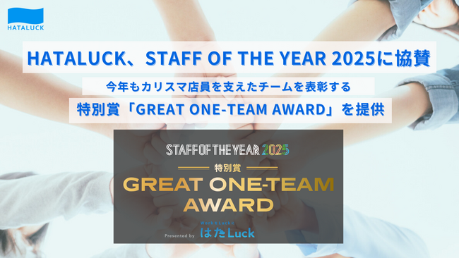 サービス業の職場マネジメントツール「はたLuckアプリ」を提供する株式会社HataLuck and Person(本社:東京都中央区、代表:染谷 剛史、以下「HATALUCK」)は、令和のカリスマ店員を決めるコンテスト「STAFF OF THE YEAR 2025」に、今年も協賛することをお知らせします。スタッフ個人の活躍は、店舗のチームワークやエンゲージメントに支えられているとの考えのもと、カリスマ店員を支えたチームの功績を賞賛する「はたLuck presents GREAT ONE-TEAM AWARD」を、10月9日のファイナルステージにて提供します。