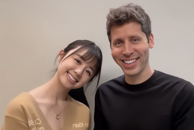 Soraでの肖像パブリック利用を解禁しているOpenAI最高経営責任者、サム・アルトマン氏との2ショット(Soraスクリーンショット)