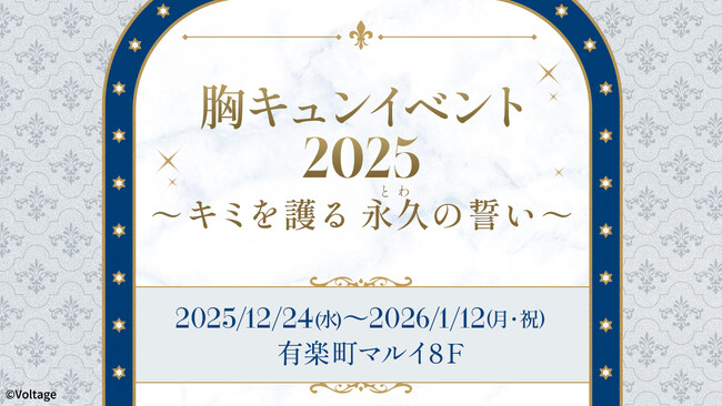 株式会社ボルテージ(本社:東京都渋谷区 代表取締役:津谷 祐司)は、胸キュンイベント2025「キミを護る 永久(とわ)の誓い」を2025年12月24日(水)~2026年1月12日(月・祝)に有楽町マルイにて開催することをお知らせいたします。