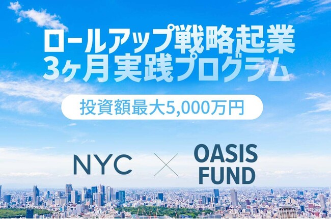 中小企業投資のプロフェッショナルであるNYC株式会社と、スタートアップ創業・支援に強みを持つOASIS FUNDが共同で提供する、ロールアップ戦略起業の実践型プログラムです。